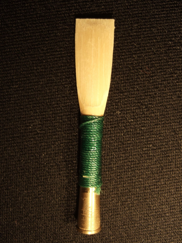 The reed is mounted on a Chiarugi English Horn staple nr3. Hand scraped. The standard length is comprised between 49.5 and 50 mm, the width at the tip is about 9.3/9.2 mm.