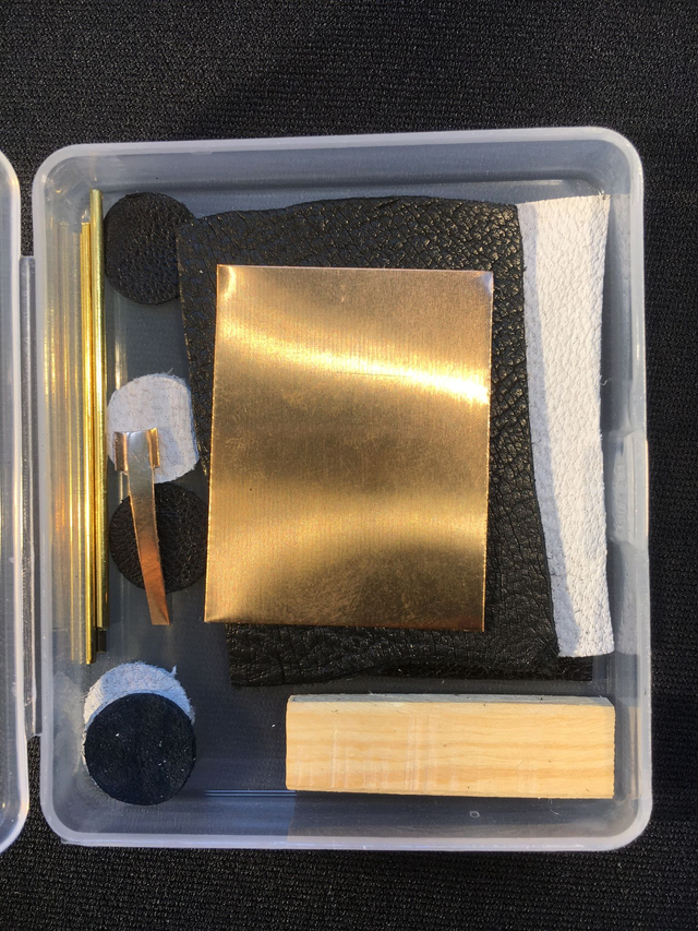 -a sheet of phosphor bronze for spring replacement, and a wooden wedge to hammer it in place.