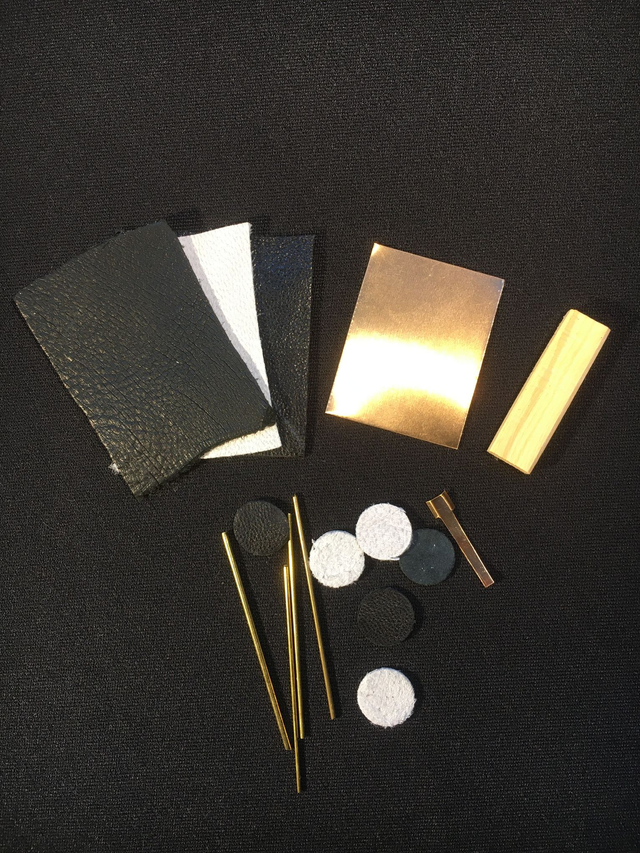 Repair kit for baroque-type oboe flat keys: axes, pads and springs. Kit de réparation pour clés plates de hautbois baroque: axes, tampons et ressorts.